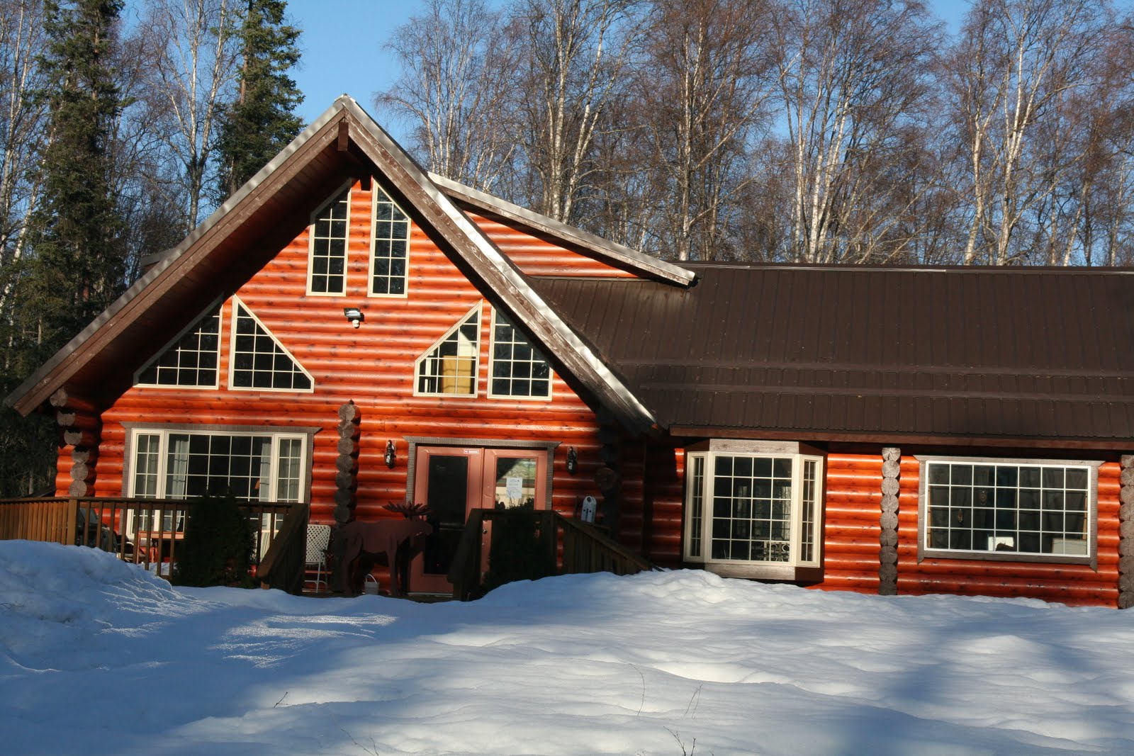The first few pictures are from our Teddy goes to Denali trip. The Bear and Teddy was so much fun I had to share. On our way to the Bed and Breakfast we past this driveway with two toilets on each side of the driveway. the lady told us she puts beautiful plants in them during the summer. She said it is a fun "sign post" for their house. "Just drive down the road until you see two toilets and turn in to our house." Interesting.